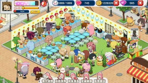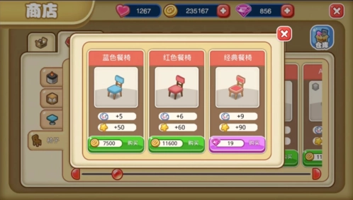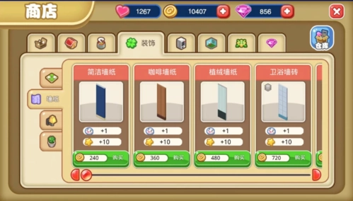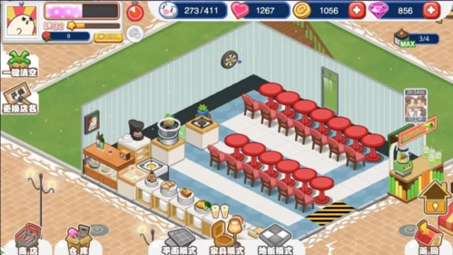 在商店里购买墙纸和地板,将餐厅布置起来。这些装饰并不贵,如果金币足够,还可以购买盆景和墙饰。
