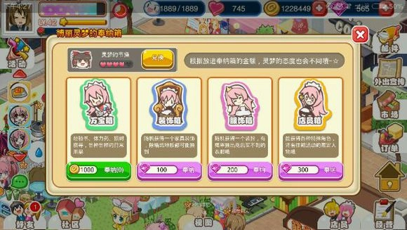 多样的系统与玩法、精致的日系Q版画风、巧妙的场景对象设计,再加上原汁原味的日本动漫角色与服装,定能为你带来别具一格的游戏体验与视觉享受。游戏融合了丰富多元的元素:既能作为休闲小游戏轻松畅玩,也能深入探索复杂系统,展现你出色的经营决策能力;还能像恋爱游戏般培育美少女、提升好感度,解锁心动剧情。无论你是精通ACG文化的御宅族、模拟经营的忠实爱好者,还是偏爱轻松休闲游戏的萌系玩家,都一定会爱上这款游戏的!