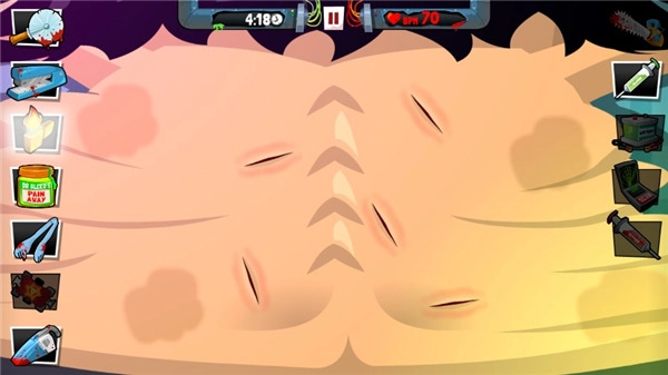 这一关终于用不到锤子了,直接用刀子,切割肠子中有红色颜色更深一点的部分