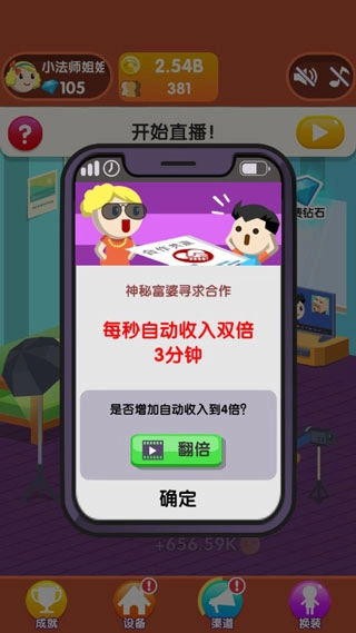 解锁提升直播间设备,可为你带来不错的直播收益,期间有些设备达到一定的等级还能更换。