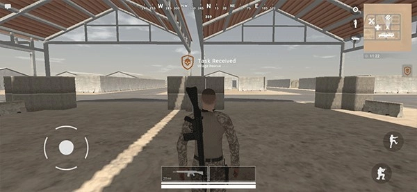 4、在游戏里,你可以用左下角的摇杆来操控角色移动,点击枪的图标就能使用武器发起攻击。