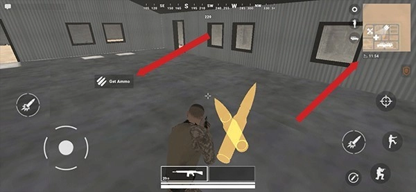 5、初始出生点属于我方安全区域,玩家能够在这里补充弹药、驾驶车辆或者恢复生命值。比如,靠近弹药点后点击“Get Ammo”就能完成补给。