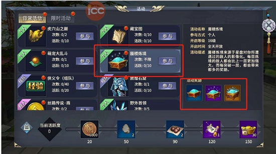 为了减负各位勇士挑战蜃楼炼境的时间,凡是当天活跃度达到120即可获得一张炼境扫荡符,可以直接扫荡到上一次通关的层数。让各位侠士能更加充分的挑战更高的关卡!