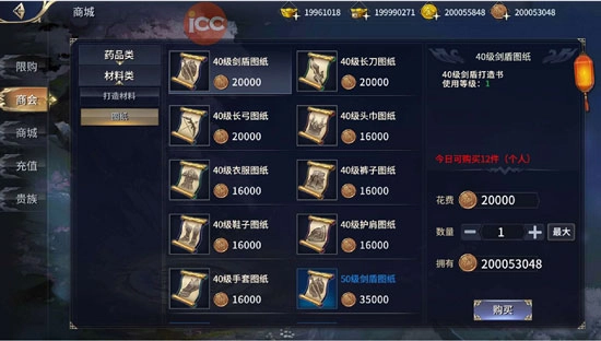 图纸为商会购买获得,每天可购买有上限条件。