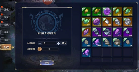 不同材料消耗不同铜币进行合成材料