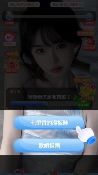 1、进入游戏后,先聆听系统播放的歌曲片段,然后在限定时间内从给出的文字选项里准确选出对应的歌手、歌名或歌词,以此完成基础关卡的挑战。