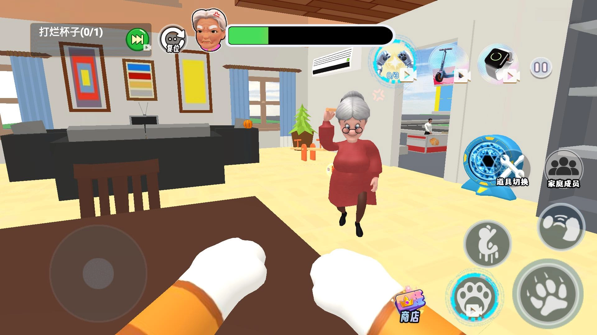 2、执行具有破坏性的任务时,优先选用杯子、碟子这类便于操作的物品,在快速完成目标后迅速撤离,以此控制怒气值的上升。