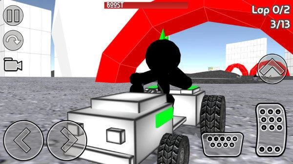 2.在惊险刺激的特技赛道上,和其他玩家展开激烈比拼。游戏采用卡通风格,运用低多边形建模打造出独特的视觉效果。