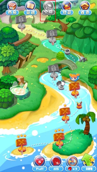 4、收获植物产品可获得200能量豆,收获磨坊产品可获得300能量豆,收获畜牧产品可获得400能量豆,收获水产品可获得500能量豆。在收获能量豆的同时,还能收获食材。收获的食材会存放在菜篮子图标中,点击该图标即可查看收获的食材;或者返回选关界面,点击“仓库”标签,也能看到所有已获得的食材。