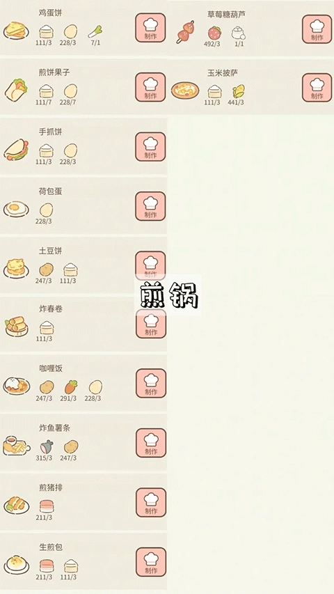 煎锅类菜谱涵盖了利用油脂快速烹饪的快手菜,主要包括蛋类、肉类煎制以及面糊类的甜点制作。