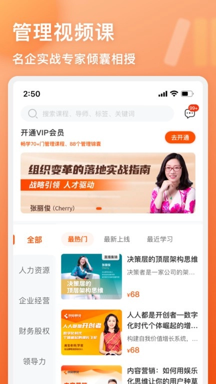 这是专为企业管理者精心打造的互助学习平台。平台内设有张丽俊老师的管理读书会,还有来自众多企业管理实战专家提供的管理视频课程。此外,还配备了互助问答社区与管理锦囊,助力管理者解决日常管理中的各类难题。从企业经营、业务增长、团队管理到职业素养等多个维度,全方位帮助管理者构建底层认知,学习职场实用技能,进而提升自身竞争力。“管用”,即能有效管事理人,凭借此实现致胜目标。