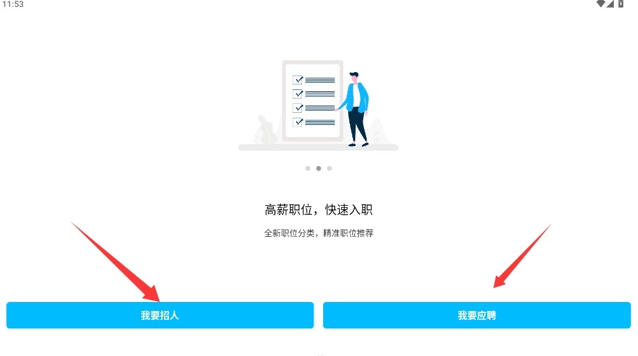 2、根据身份选择"我要应聘"或"我要招人"模式,进入对应功能界面