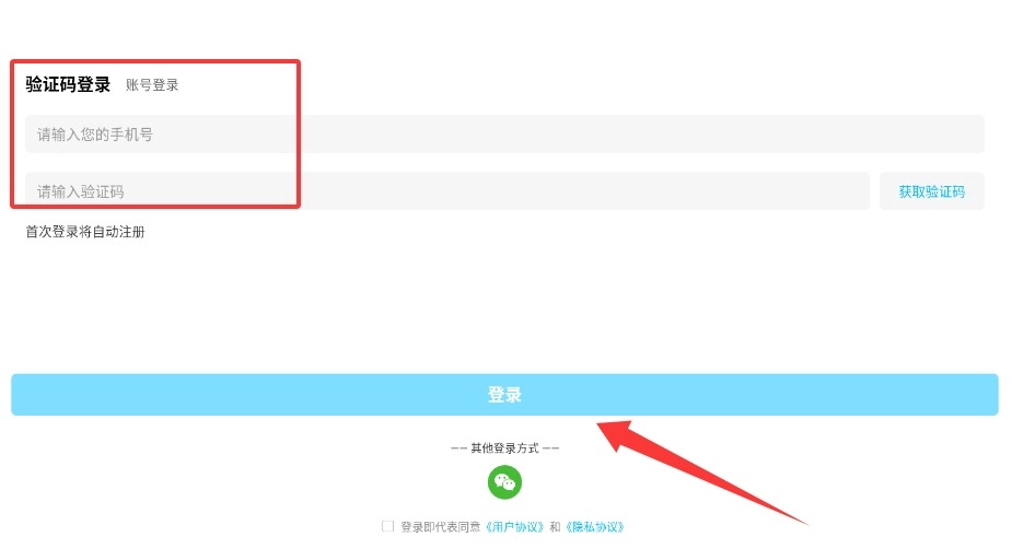 3、选择手机号验证或微信快捷登录,输入相关信息完成账号注册/登录
