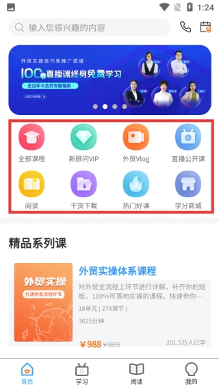 1. 开启外贸学习,于首页能够挑选【全部课程】【新顾问VIP】等功能,进而进入相应的学习板块。