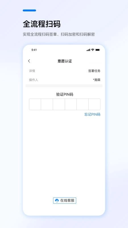5、进入意愿认证页面,输入验证PIN码即可解密,同时可在线咨询客服;