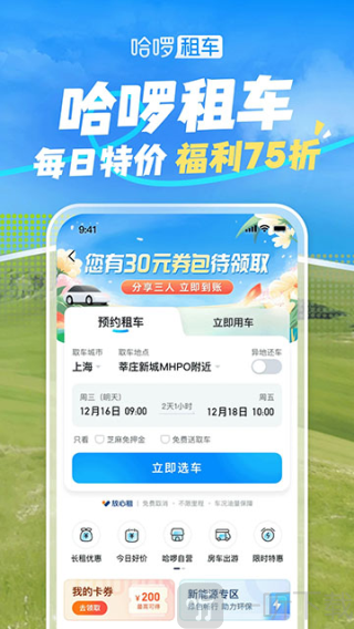 哈啰出行顺风车提供多种租车服务,能带你前往指定目的地,是一款超好用的最新约车出行软件,出门在外用它再合适不过。用户选好地点后,只需挑选合适的车辆服务,稍等片刻,就会有司机来接。此外,还能选择单车租赁,自由骑行,体验别样的旅游出行方式。