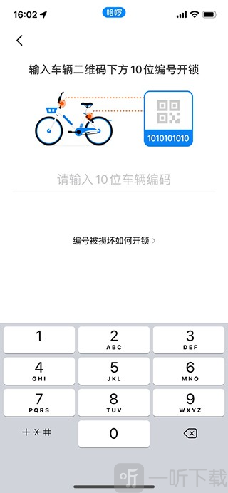 3.输入车辆二维码下方的10位编号即可开锁成功。