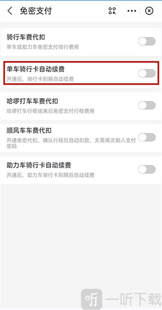 3.然后将单车骑行卡自动续费功能右侧的按钮关闭即可。