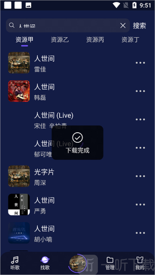 4. 用户也能够在【管理】页面里的【完成】列表中,查看已完成的音乐。