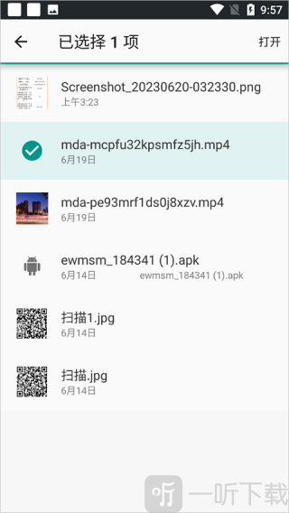 4. 紧接着,长按已挑选好的本地音乐,这时在页面顶端右侧会弹出【打开】选项,用户点击此选项就能完成添加。