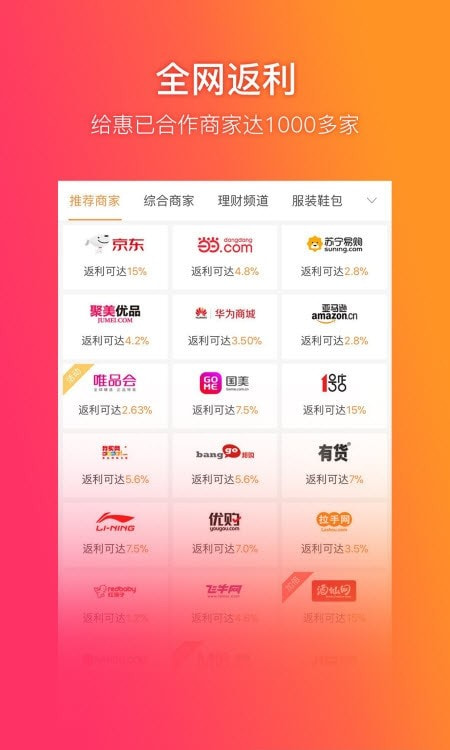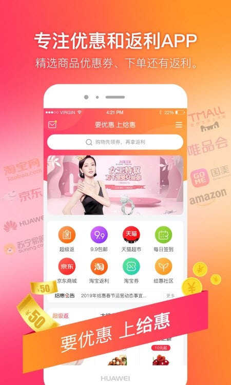 1、商城返利:超300家返现商城,最高返现可达50%。 2、超级返利:每日上新上千款优质好物,不仅有大额优惠券,还有超高返利,让实惠进行到底。
