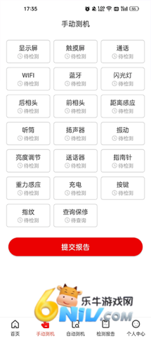 2、选择手动测机,提交检测信息,确保手机状态透明。