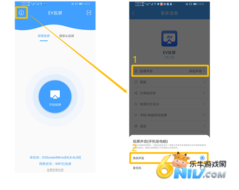 2、确保安卓手机的EV投屏升级至1.1.0版本。