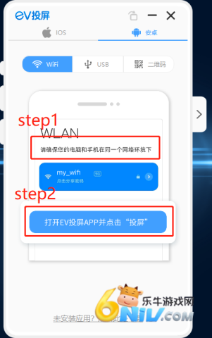 3、务必保证电脑与手机同时打开EV投屏,且二者要连接至同一个WiFi网络。