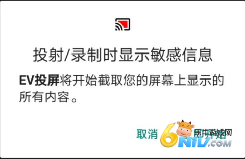 请选择需要连接的设备,此时系统会弹出 “投射/录制时显示敏感信息” 的提示。若您点击【立即开始】,就能开启投屏;若选择【取消】,则意味着退出投屏操作。
