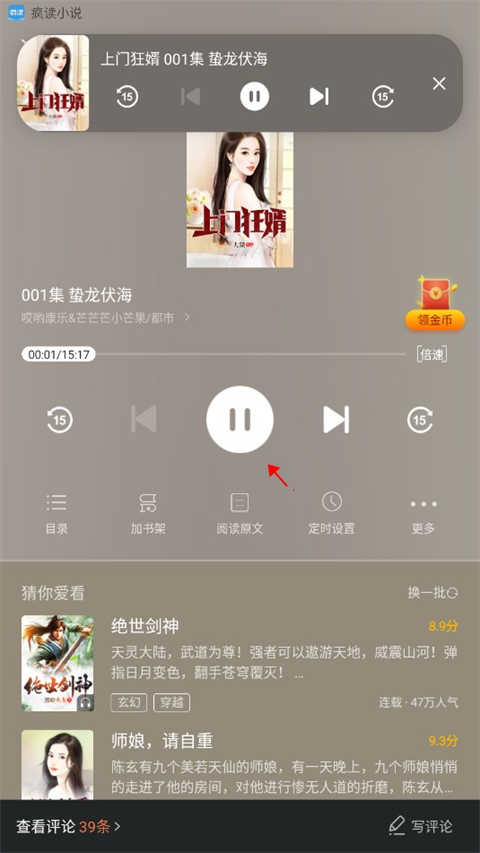 4、在阅读过程中,也可以点击听书图标切换至听书模式。