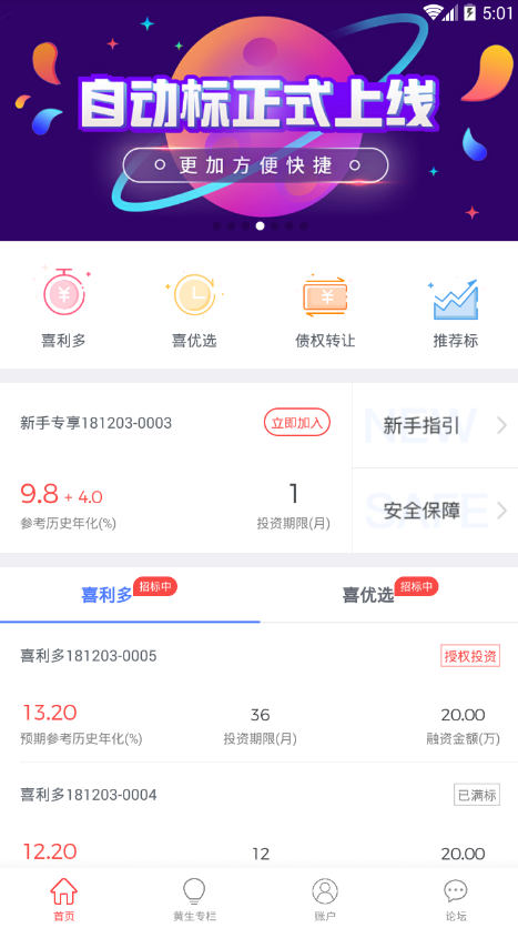 1. 多元化投资产品线:喜投网具备多元化的投资产品线,能够契合各类投资者的需求,涵盖固定收益、浮动收益以及股权投资等多种类别。