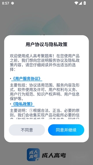 1、在本网站安装成人高考聚题库并启动。