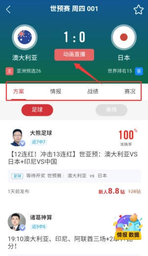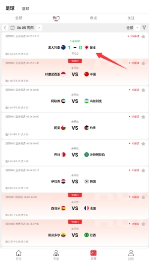2、选择关注的比赛场次点击进入,即可查看该场赛事的详细数据分析和实时战报。