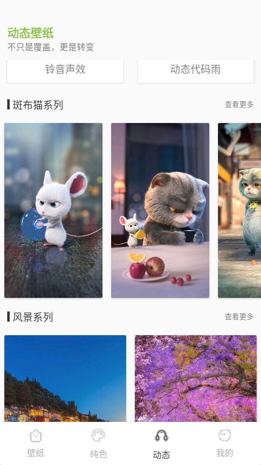 2、进入“动态”板块,在丰富多样的风格里选一款契合你审美的壁纸。