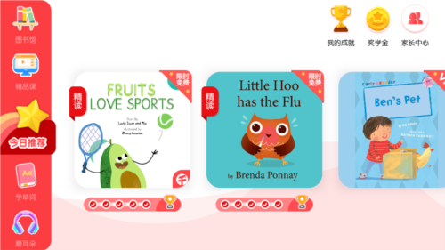 数千本外教朗读的有声电子绘本,让孩子浸润在纯正语音的英文听说环境中;
