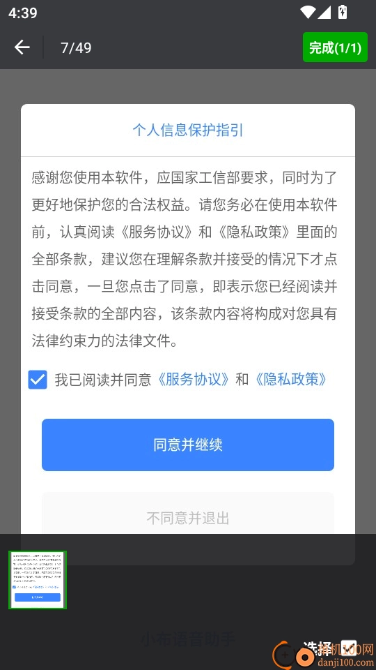 1. 首先打开软件,仔细阅读“个人信息保护指引”,随后点击“同意并继续”按钮进入下一步。