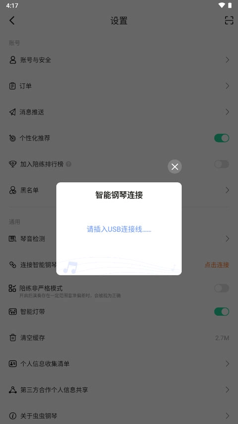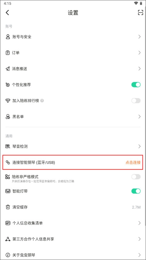 2、在设置界面中选择通用中的“连接只能钢琴”。