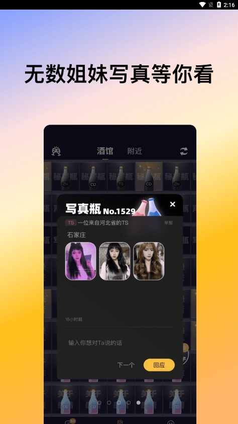 2. 丰富多元社交场景:打造漂流瓶、附近同好、圈内酒馆等多样化社交场景,全方位满足不同用户的交友需求。