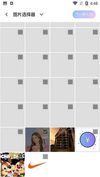 2、点击“漫画脸”选项进入图片选择界面,挑选好想要修改的图片后,点击“下一步”按钮。