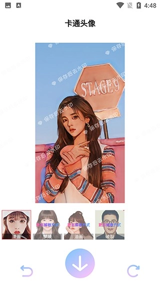 3、图片会自动转换成漫画风格,点击屏幕底部的保存按钮即可去除水印(温馨提示:若出现订购会员的提示,关闭该提示后点击观看视频,就能完成图片保存操作)。
