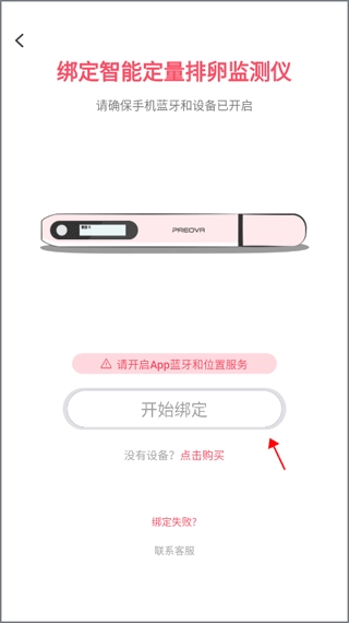 3、会看到提示要求先开启手机蓝牙和定位服务,把这两个功能打开后就能着手进行绑定操作了。