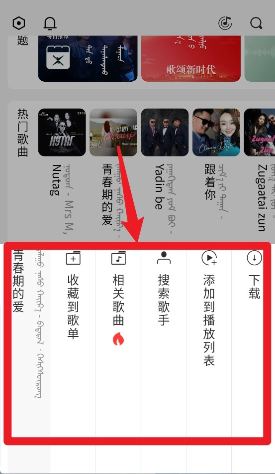 2、长按任意歌曲封面即可调出快捷操作菜单,可实现收藏歌曲、查找相似曲目、查看歌手信息或添加至播放列表等功能
