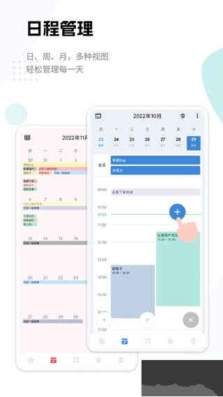 2、按天/周/月查看日程,时间安排清清楚楚,重要日子提前提醒。