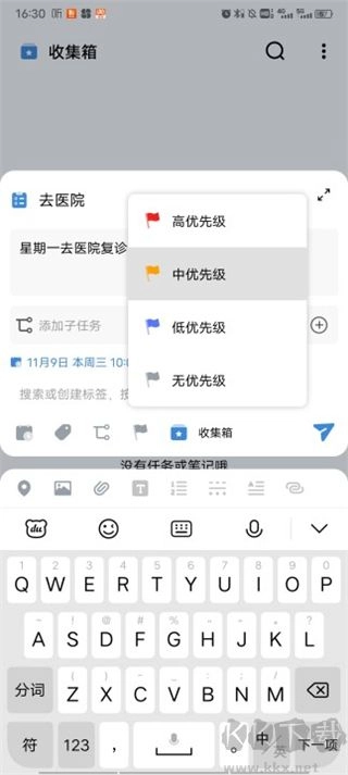 3、下方那排小按钮特别实用——能设定时间、添加标签、拆分子任务、标注优先级,点击日历图标还可以设置提醒。