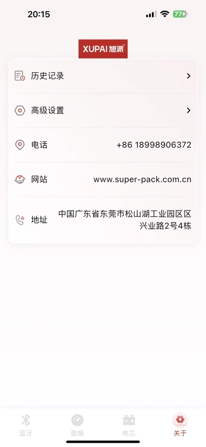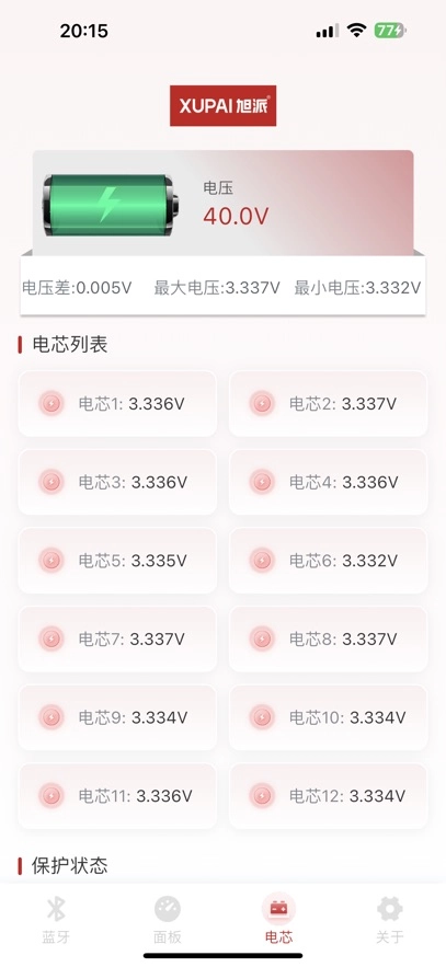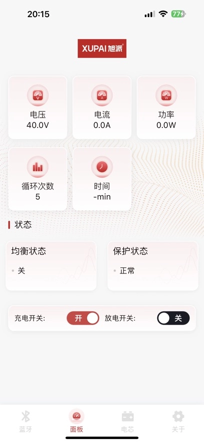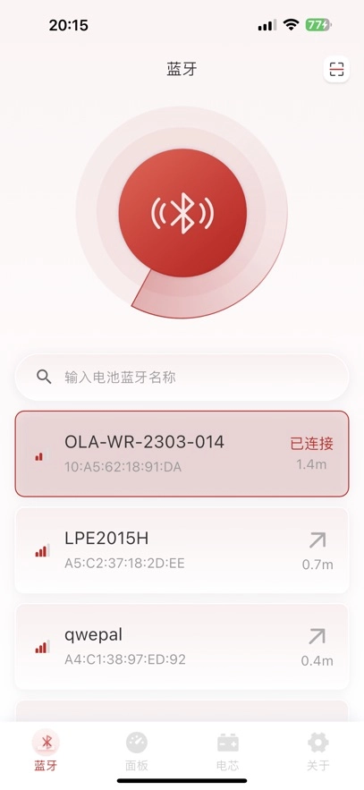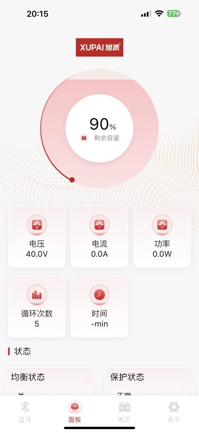 打开旭派应用后,系统会自动启动蓝牙搜索功能,只需等待搜索到电池蓝牙信号并完成连接即可。