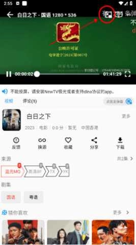 2、在播放页,点击右上角会看到一个【投屏/TV】图标如图所示: