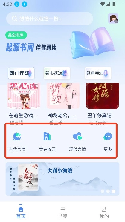 进入首页,选择喜欢阅读的题材