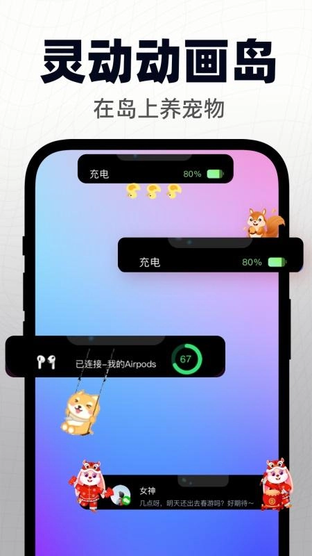 这是一款手机通知栏提醒工具,当手机处于充电、播放音乐、插入耳机等状态时,您都能及时收到通知。此外,您还可以自由调整灵动大陆的尺寸与位置,让手机界面更具美感。