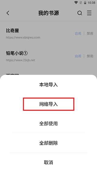 4、以网络导入为例,输入在线书源地址并点击“在线导入”。