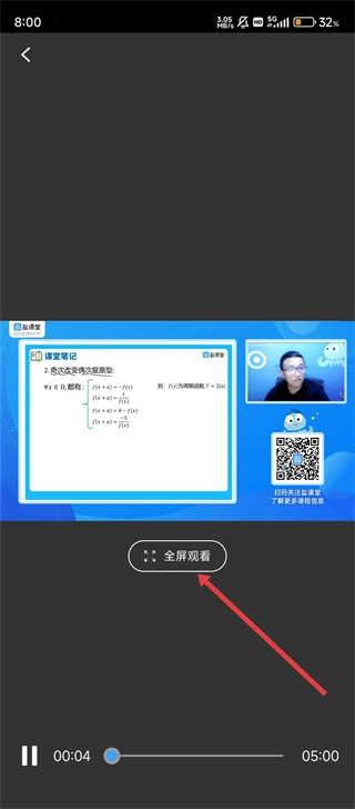 4、进入课程界面后,找到并点击【全屏观看】按钮,即可切换至全屏模式学习课程内容,这样能让学习过程更具沉浸感,帮助你更高效地理解和掌握知识。